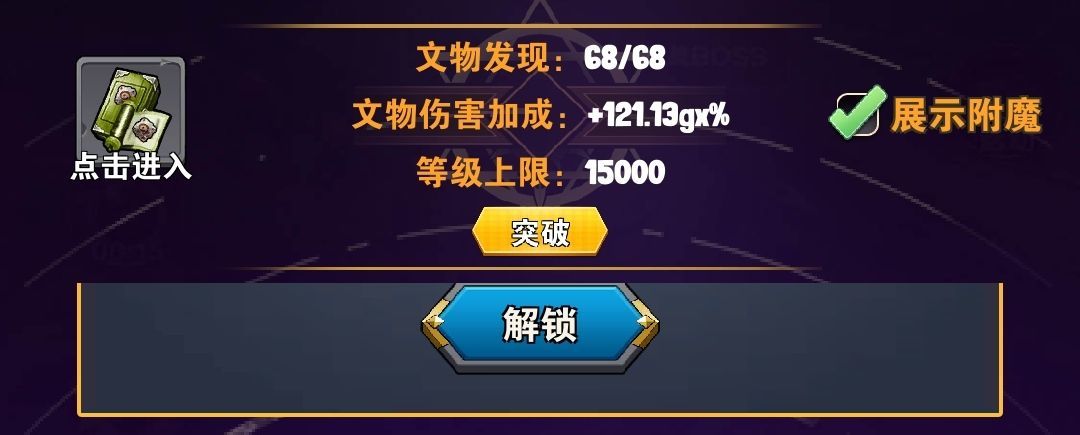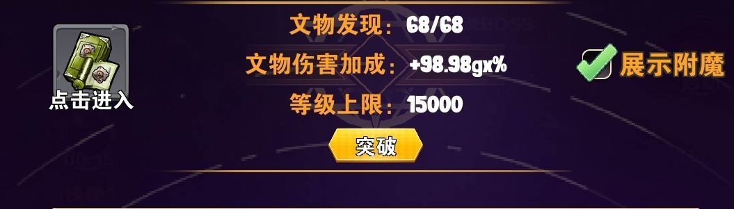 然后怎样洗才可以伤害最大化呢,个人建议可以无限升级到上限2万文物的加成的可以洗比如建造器之类的或者每1000级某某塔等级提高防御塔伤害51%的。剩下那些固定100,300之内等级的洗特殊附魔。也就是对应主塔对应伤害的特殊附魔!