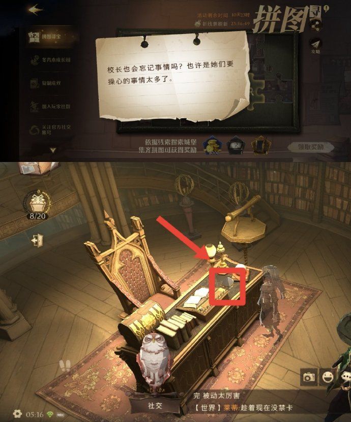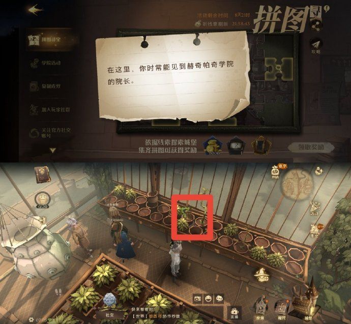 今日拼图需准备好隐形药水,地点是魔咒课教室、校长室和草药课教室