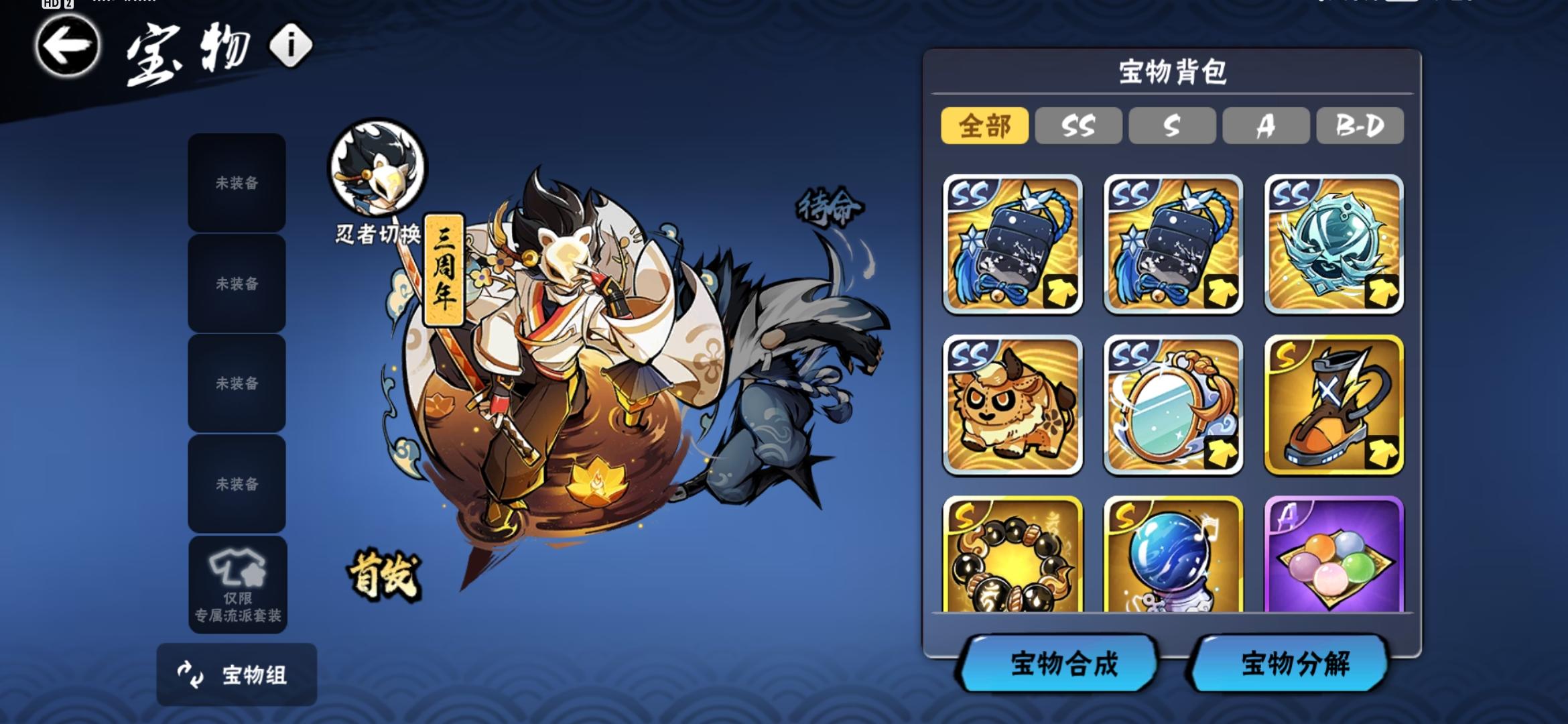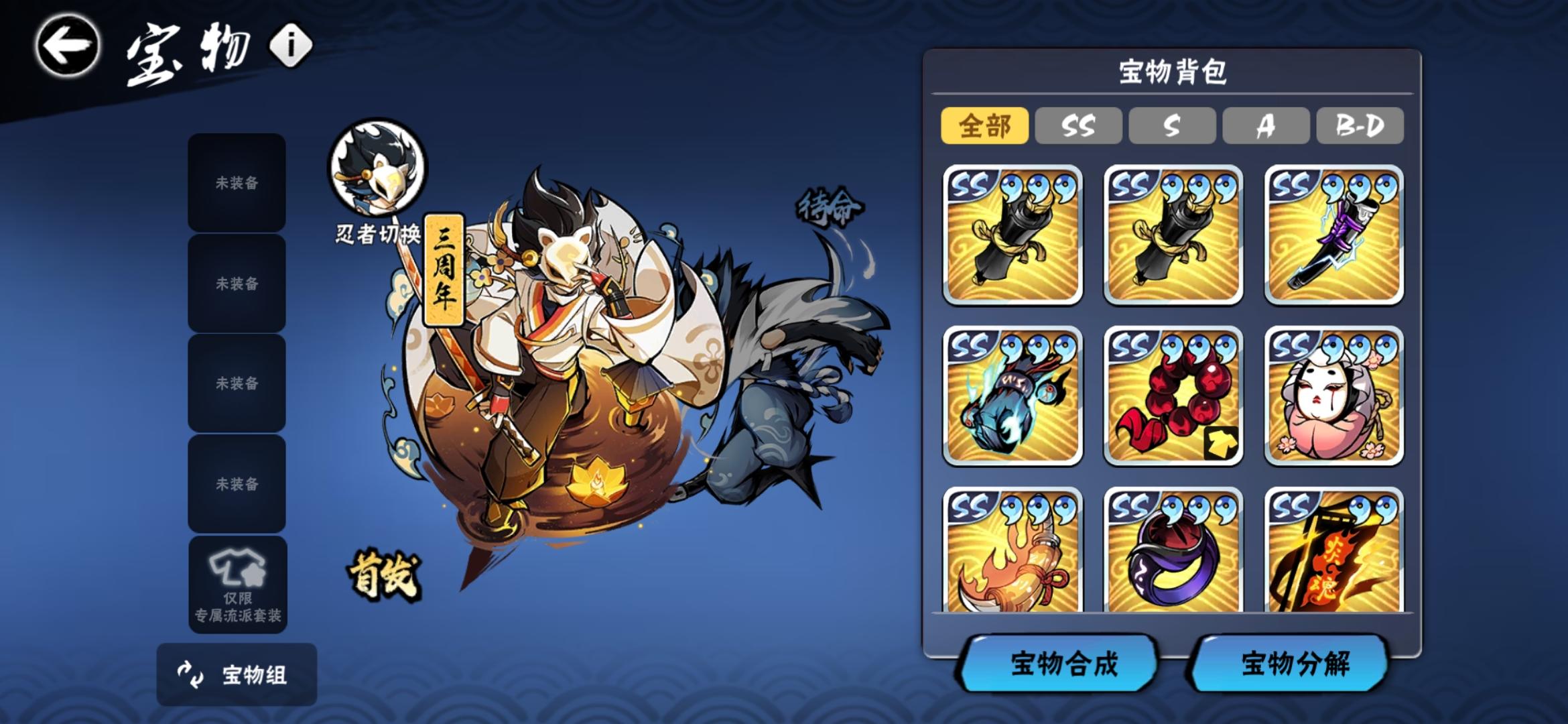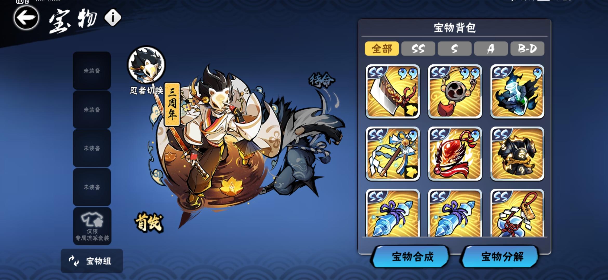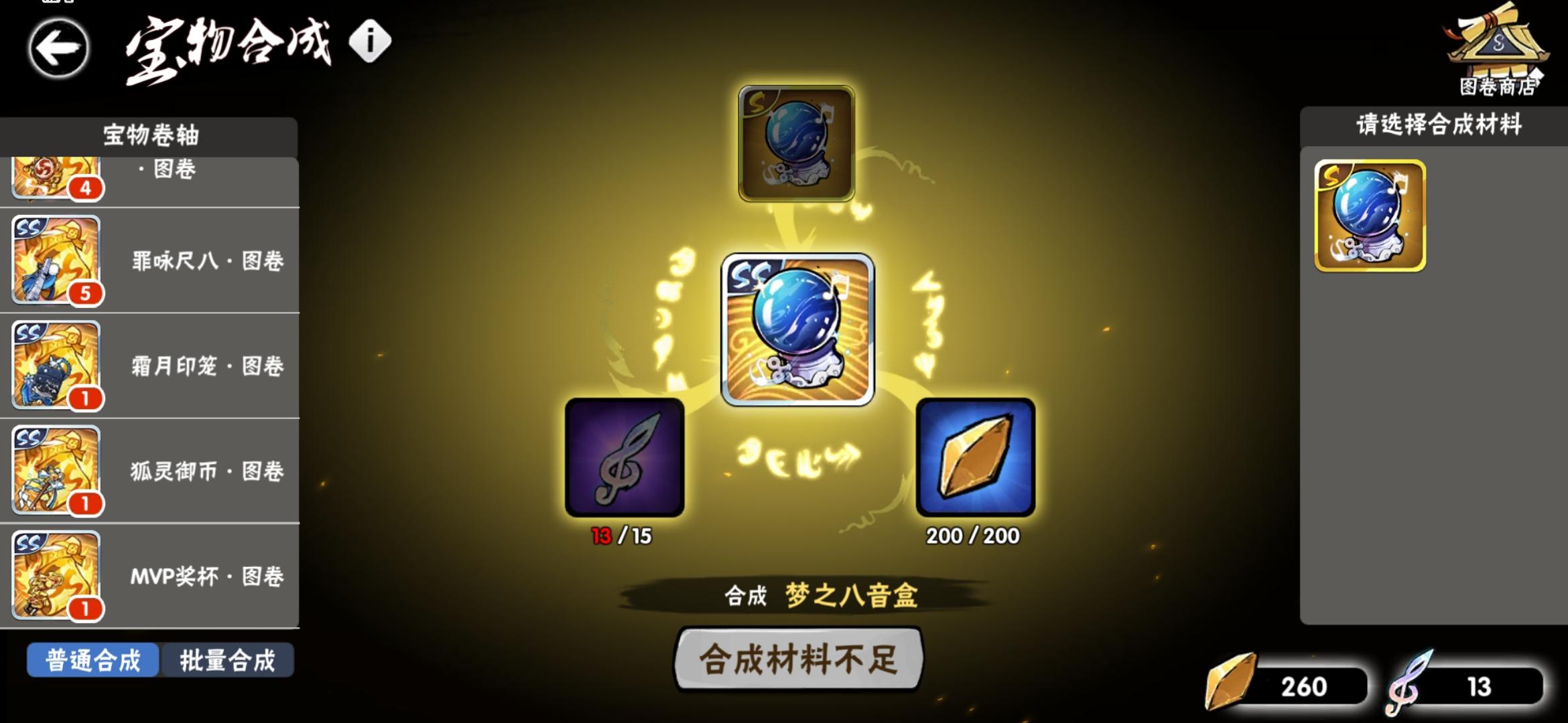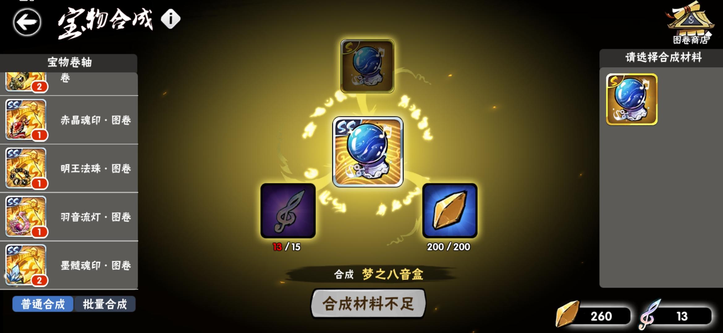 氪的金比较少,之前一年都是当零氪玩的。幻二。有忍界契约和神龙。宝物方面缺龙血,菜刀能三勾,雷牌能三勾,尺八五个图卷不过我还是想做印笼,印笼和狐币都能两勾,魂印差龙血两勾,墨髓也差龙血一勾。