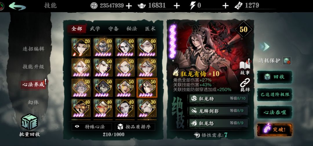 万魔绝技没满,狂龙也没满感觉还有上升空间