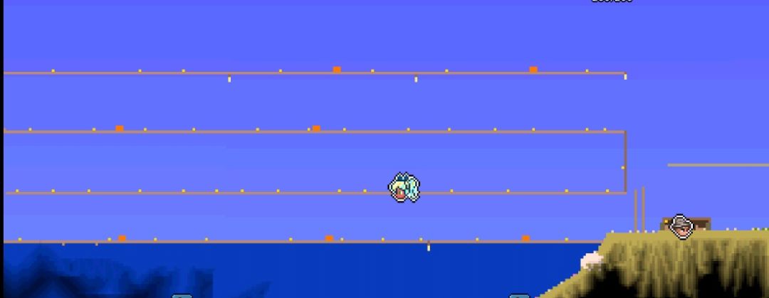 场地:在海上搭搭满平台,每隔20格左右在搭一层,总共要搭3.4层左右,跑道上每隔一段距离要放置一个篝火和红心灯笼。