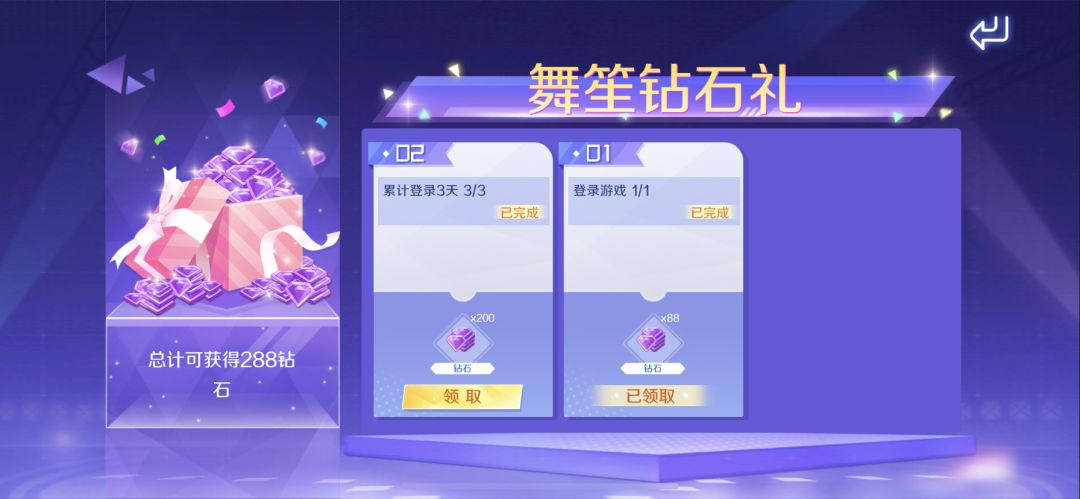 截止到10月10日,参与舞笙钻石礼活动,完成任务即可获得288丰厚钻石礼!还没有领取的小主人可得抓紧啦♪(^∇^*)