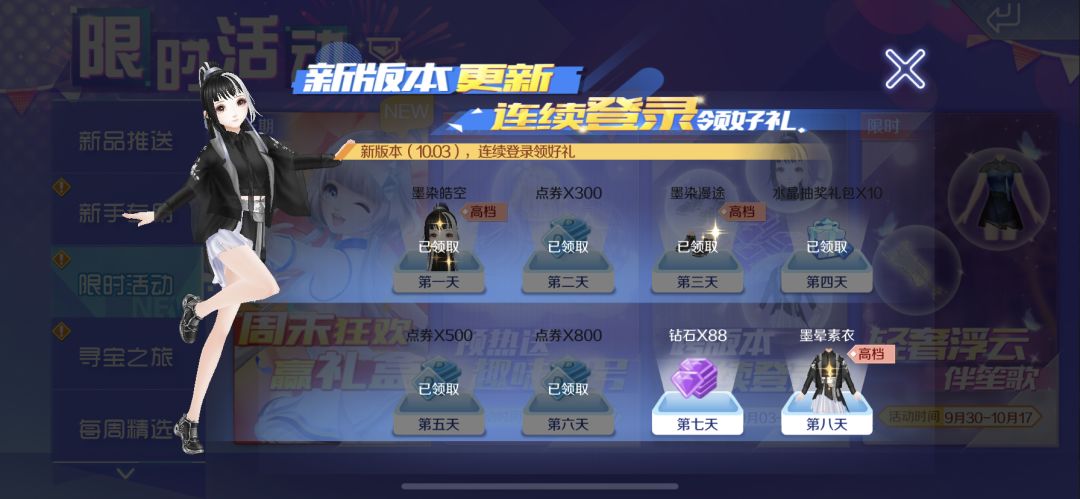 跨版本连续登录领钻石美衣