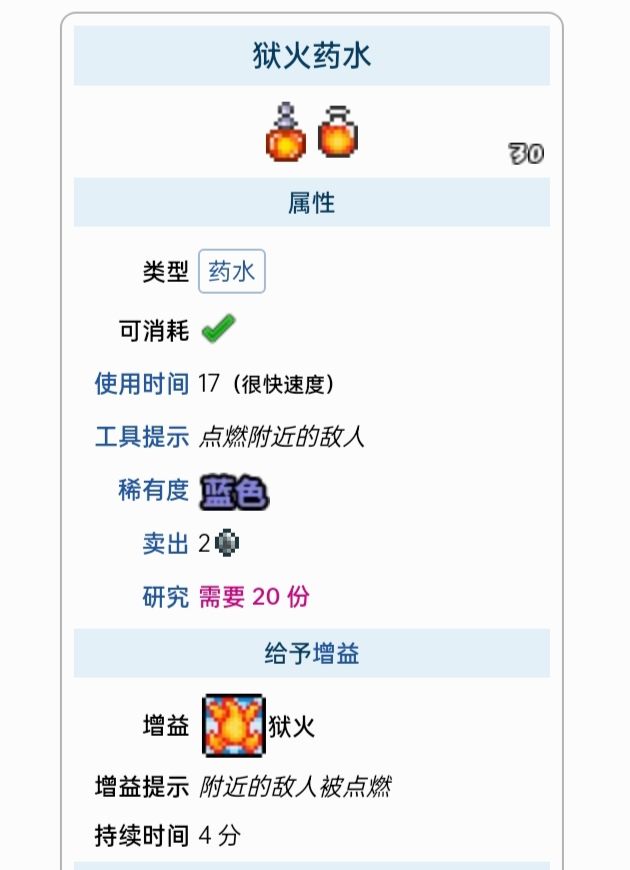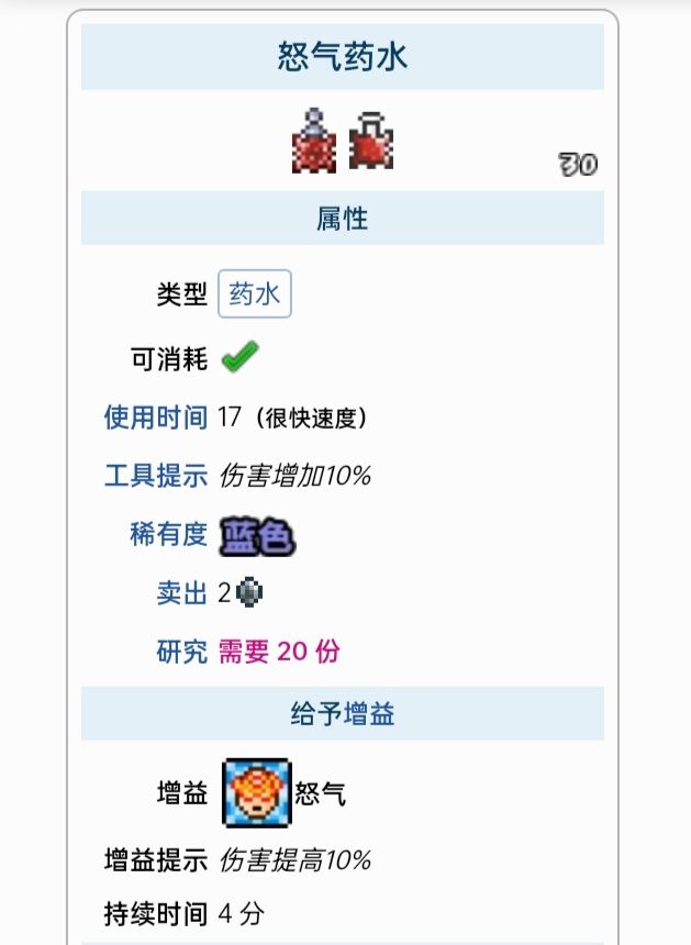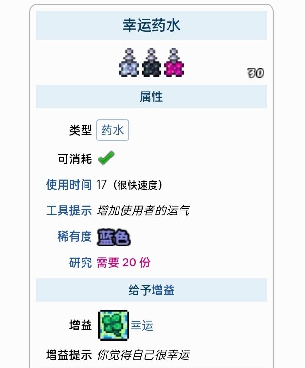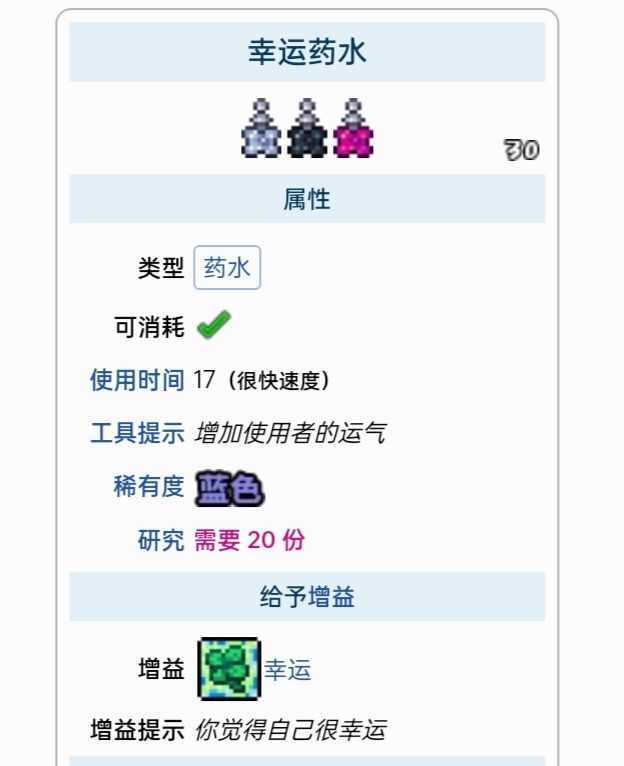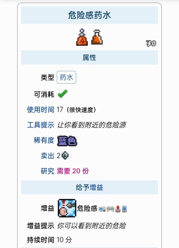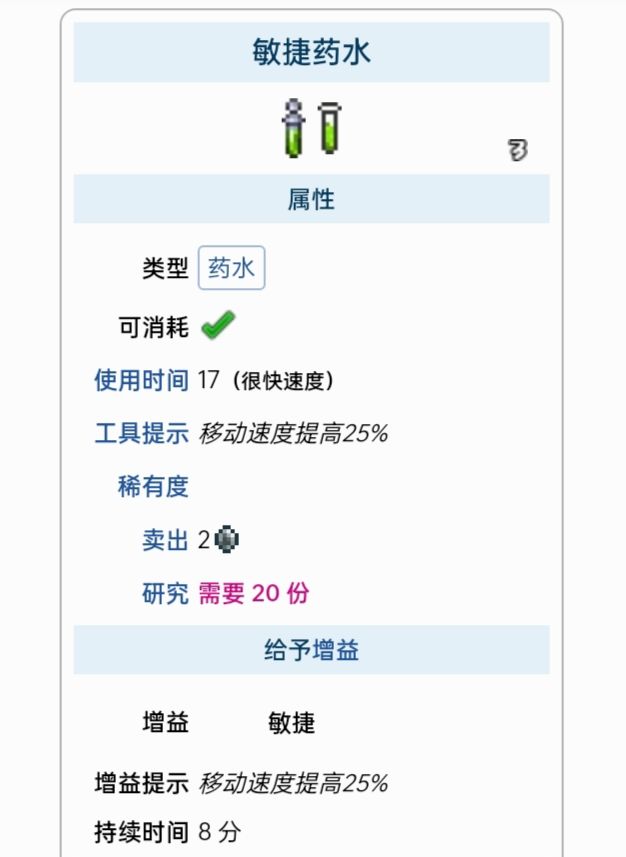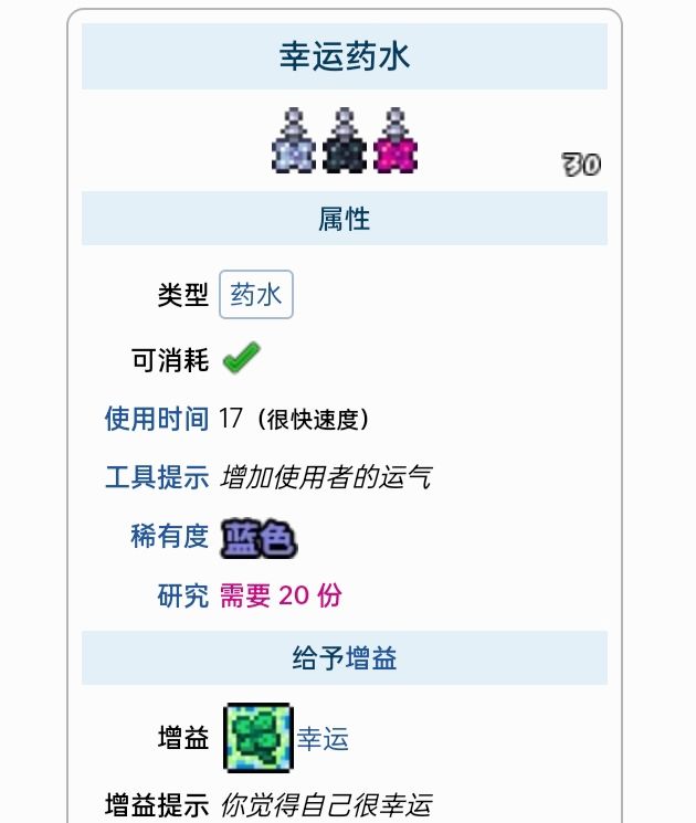 这里列出了所有能给予增益的药水