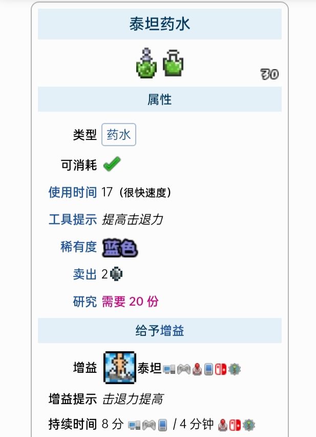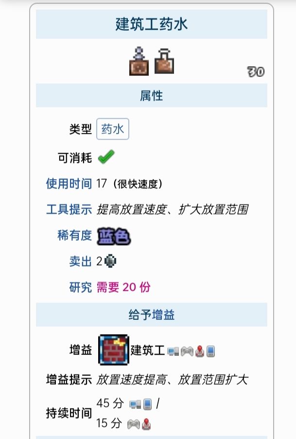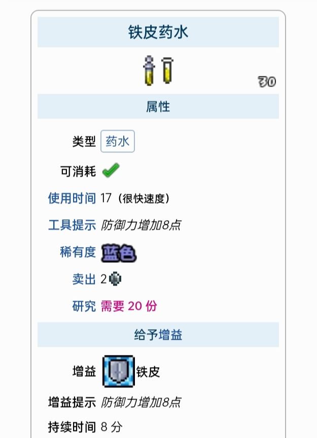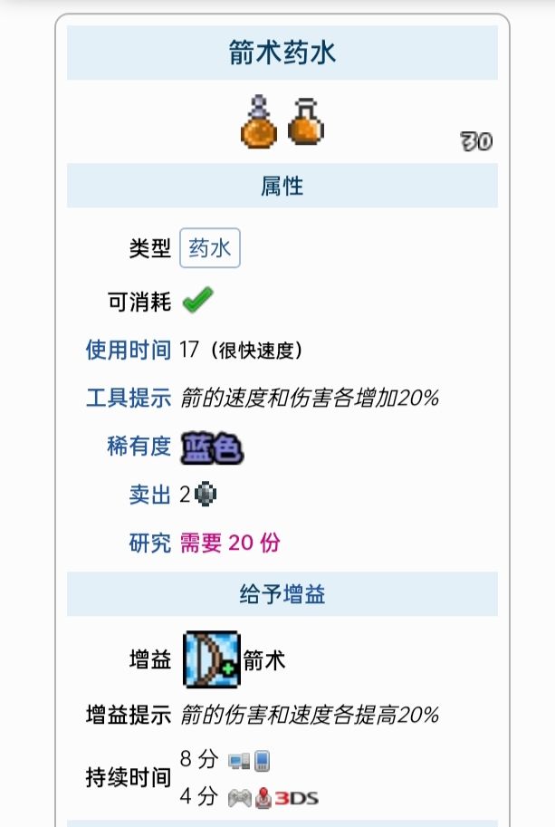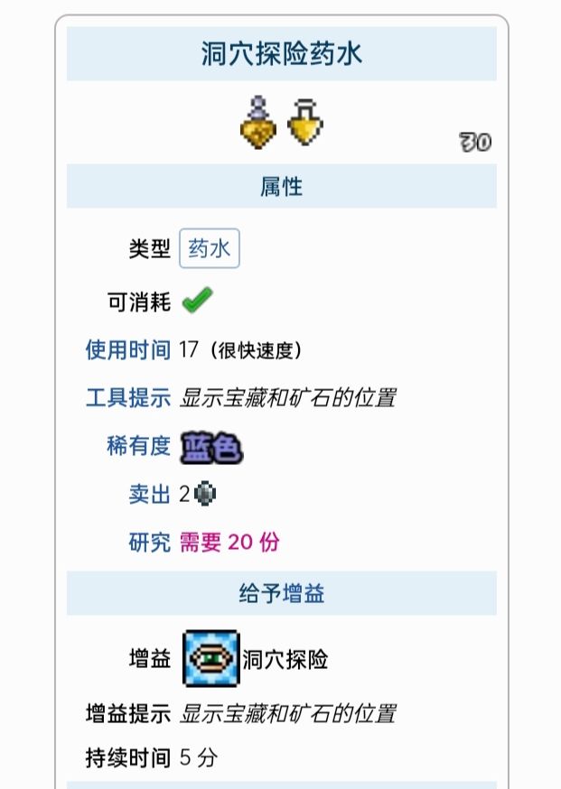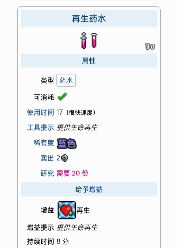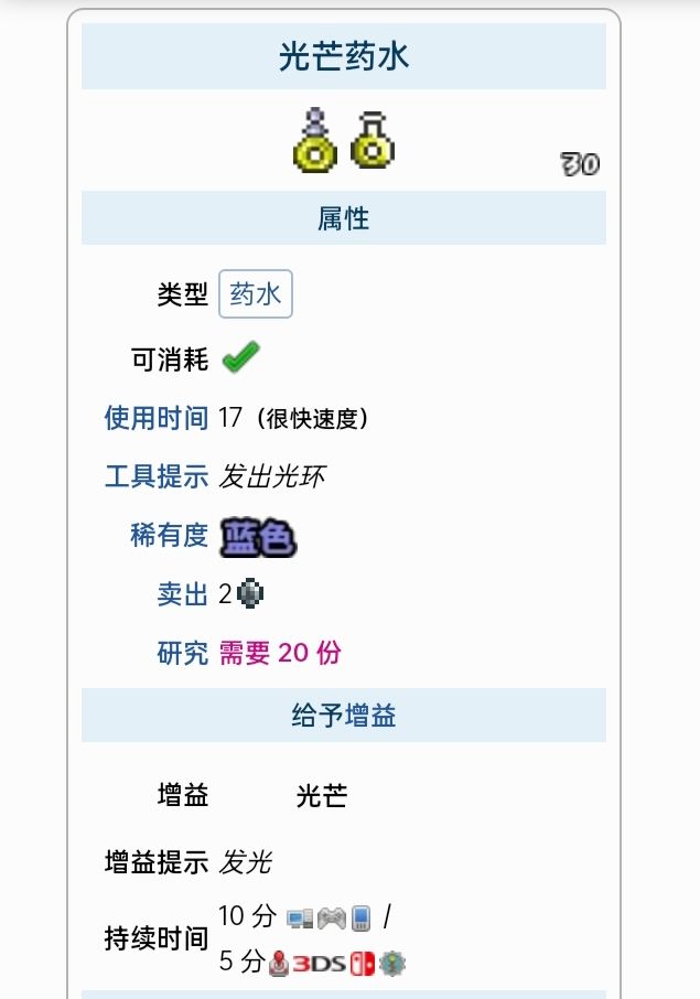 这里列出了所有能给予增益的药水