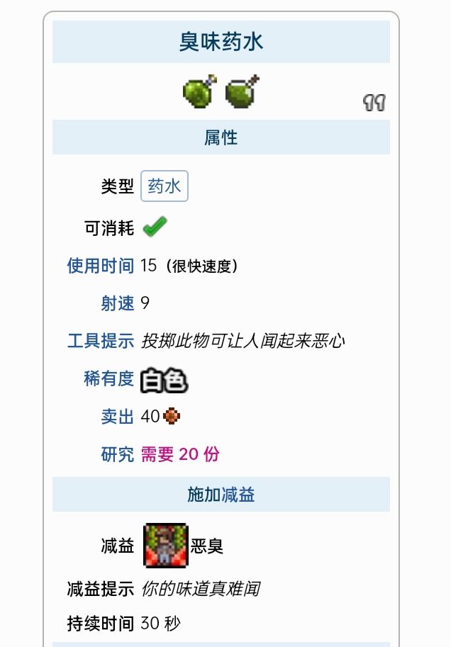 效果:投掷此物可让人闻起来恶心 30 秒