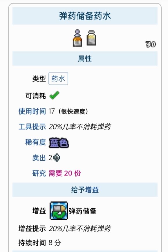 效果:20%几率不消耗弹药 8 分钟