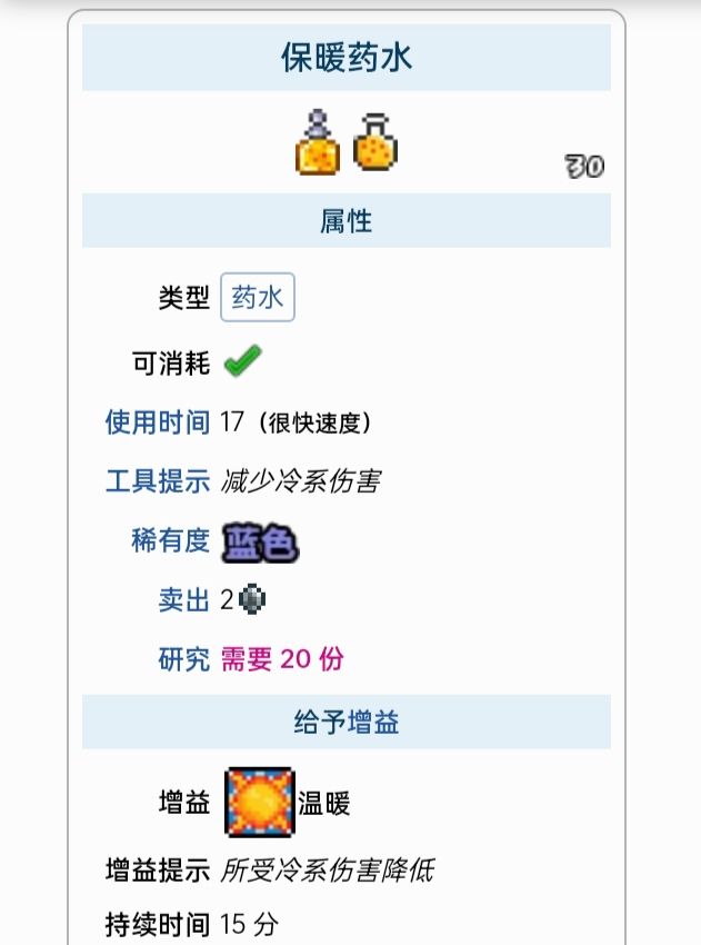 保暖药水:水瓶,寒霜鲦鱼,寒颤棘