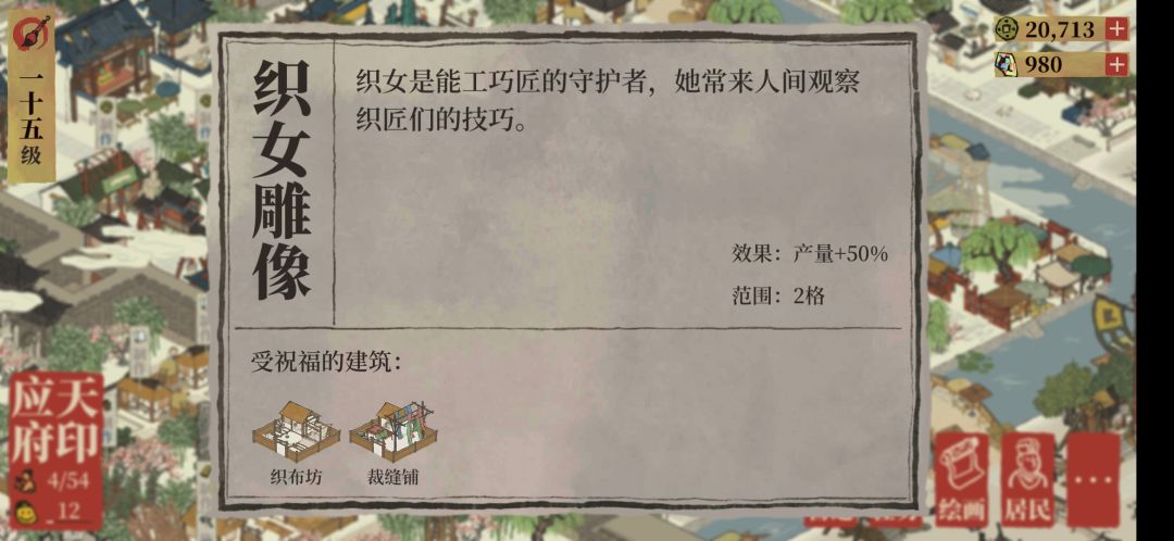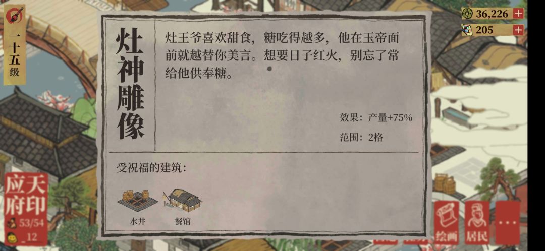 [3]水生金什么的…刚开始完全没想到水井是产出金币的,我看灶王爷加成有水井,以为他是饭馆伴生,饭馆旁边必须有水井噗😑,其他铺子我都有建,但谁还管其他地方生金啊,后期人多出来我才会派去其他铺子,不太合理的亚子