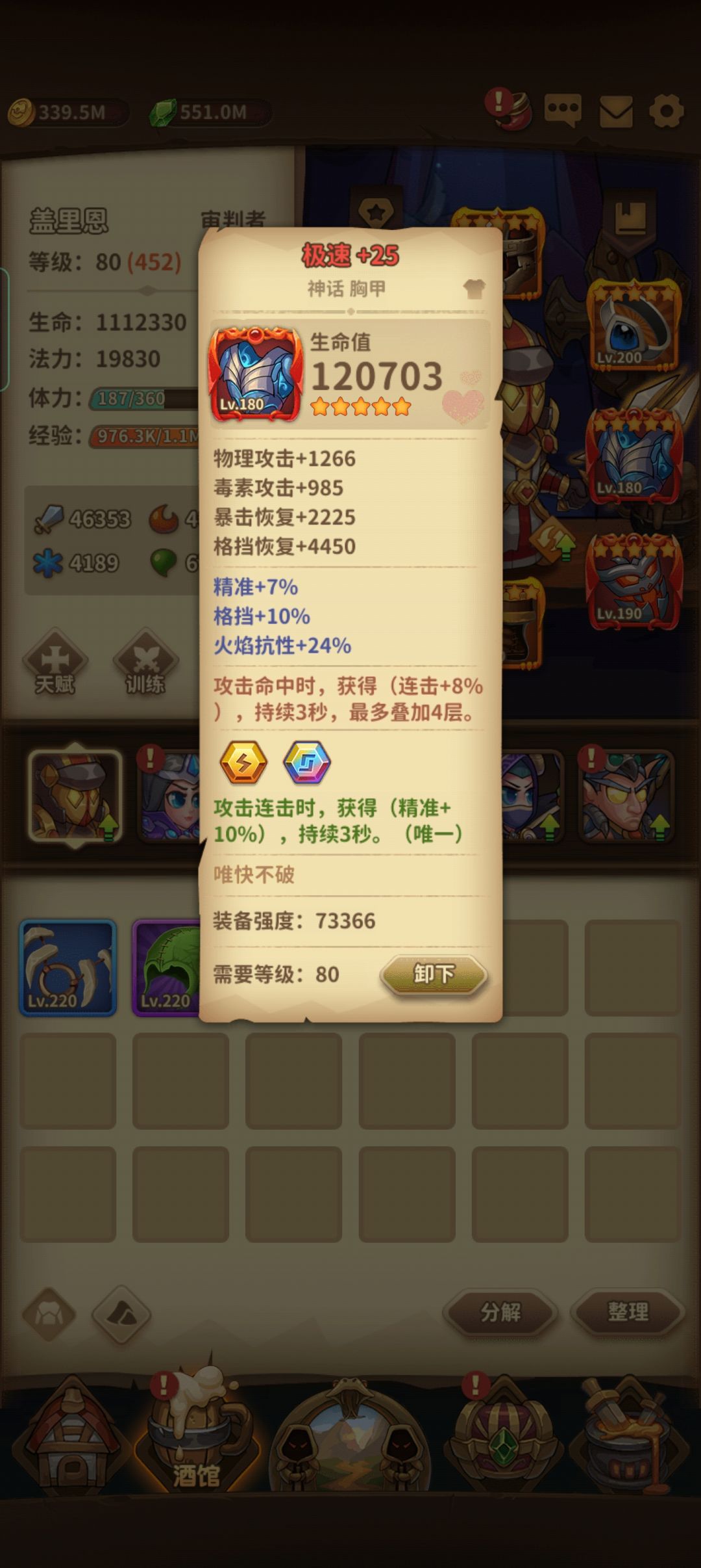 本人是暴击审判毕业的,有不少小伙伴觉得暴击脆,于是有耗资源转了格挡,然而这个阶段格挡容易超时,推塔并不算效率,实际暴击审判真的是很容易毕业的一种效率选择,需要的装备