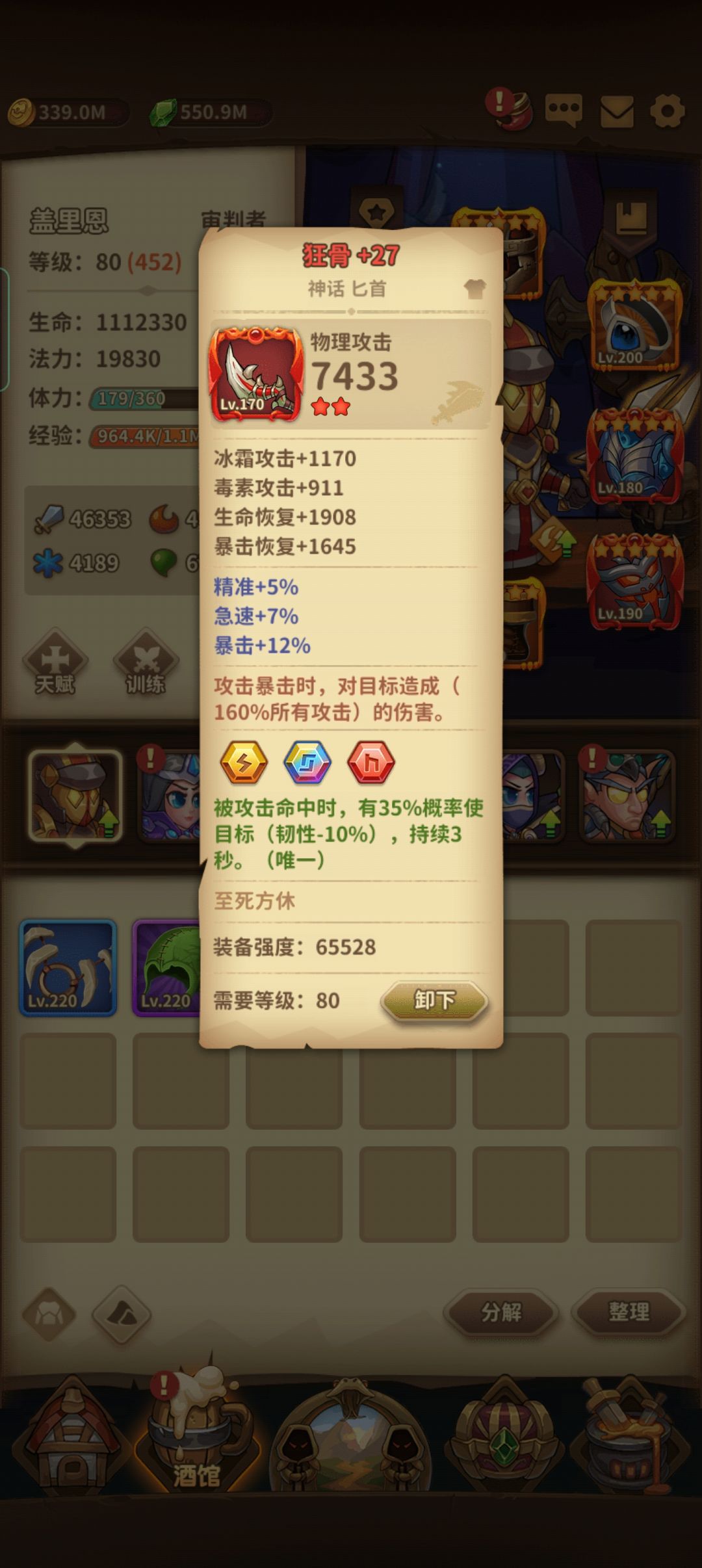 因为本身我的衣服是180级的,血量加的不多,衣服如果是两百级的,训练少点也不影响,保证自己有一百万左右的血量是比较舒服的