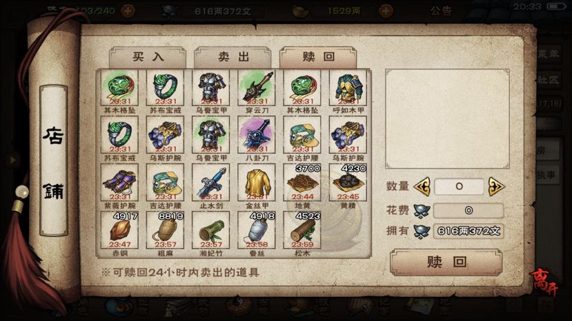 建议卖东西的时候增加一个“全部”按钮(怕选错可以增加一个确认选项嘛)。卖库存材料太费劲了。卖点材料就只能点着按钮半天不能松手。这次还算少的,之前有一回卖杂草等等的破烂就卖了快接近一个小时。