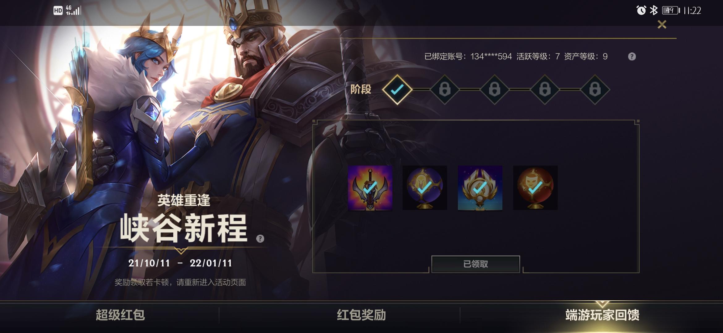 资产和活跃每个阶段能领到的自选以及随机包
