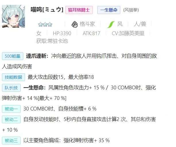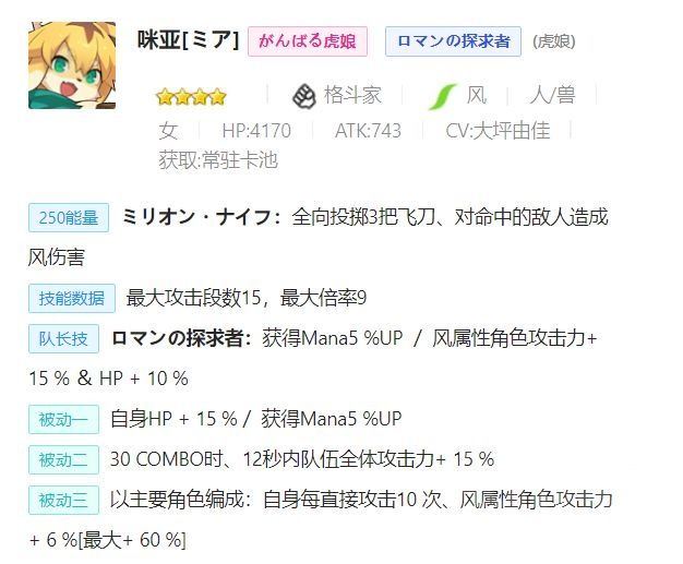 · 特殊性——四星(30combo回6%的充能,在高连击的风队作用很明显,并且锁头也能协助释放技能)