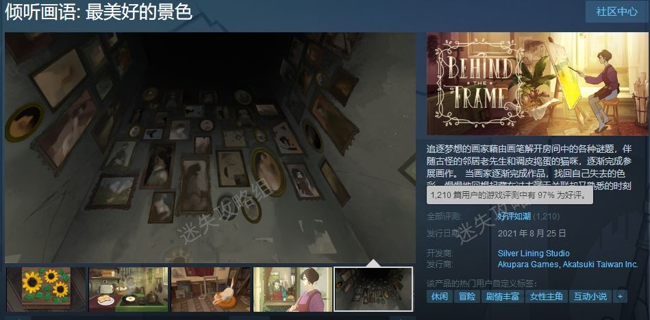 在体验完整个游戏之后,我挺想看看这家游戏工作室还有没有这种无形中带刀的游戏,一方面想再受苦受虐,一方面又想能不能再来点没有遗憾的那种甜甜的故事,结果很遗憾,这款游戏的工作室Siliver Lining Studio在steam上只有这一款游戏,在度娘上面的信息也寥寥无几。