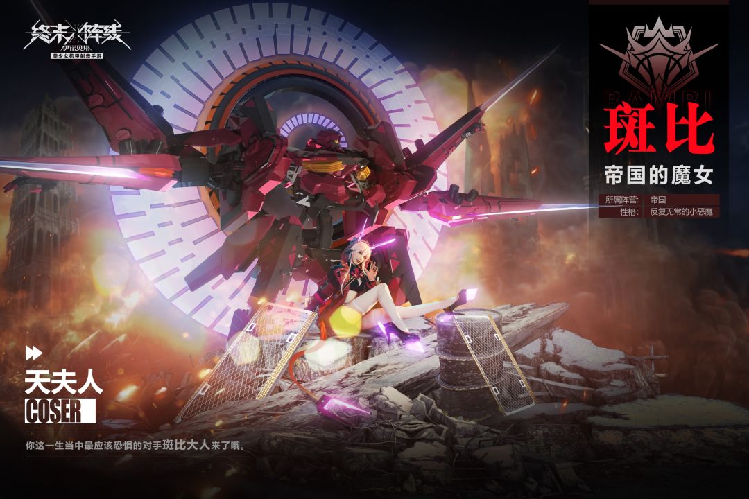帝国魔女霸气登场——斑比大人的演出开始了!《终末阵线:伊诺贝塔》游戏官方携手知名coser天夫人,为大家还原超人角色「斑比」,将这位性格反复无常的“小恶魔”活灵活现的展现在玩家们面前。
