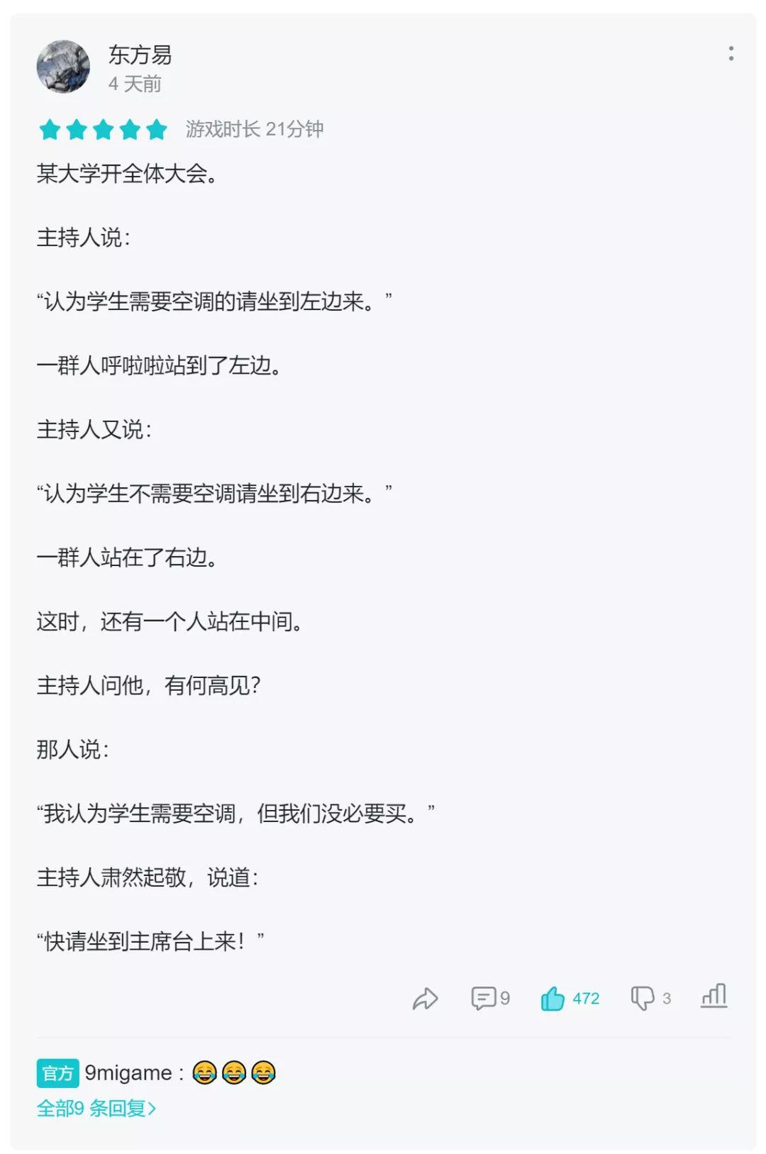 在《模拟经营我的大学》的评价区,一条画风清奇的评价成功吸引了官方的注意。