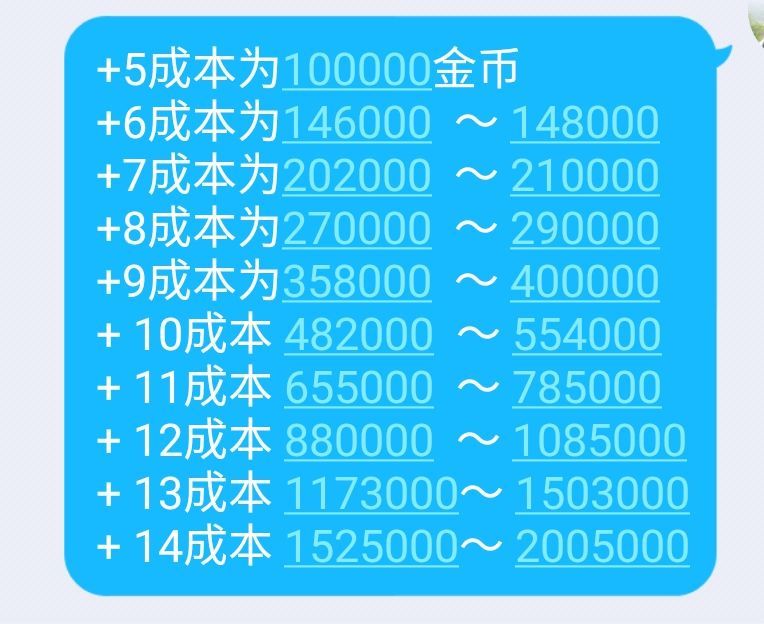 关于强化装备的成本