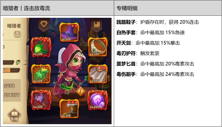 暗猎者:主毒伤+连击
