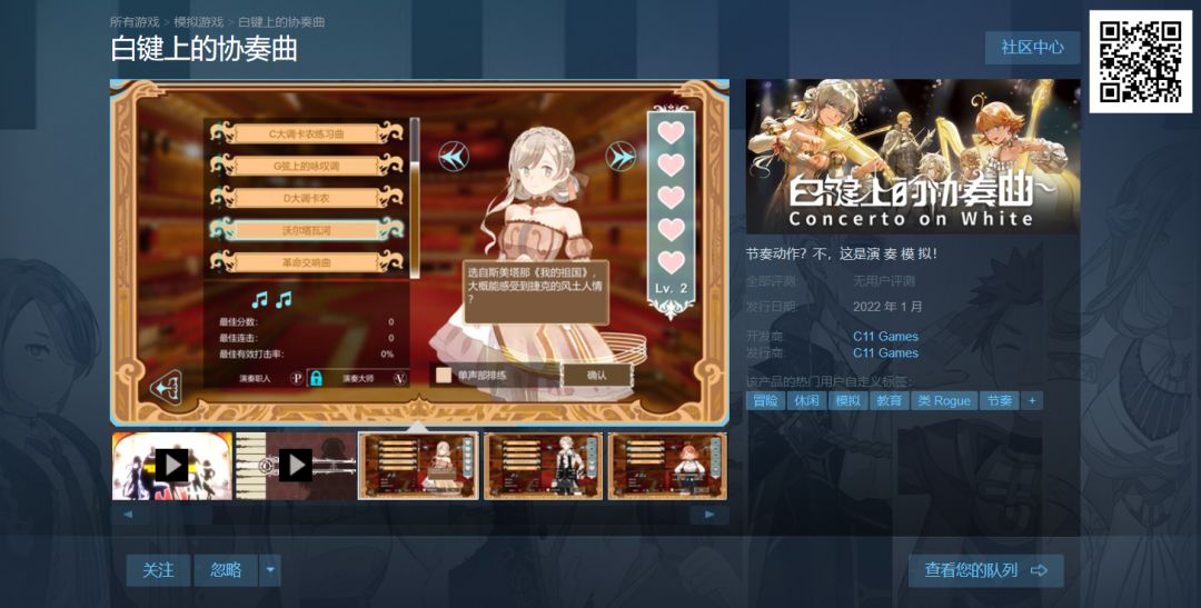 《白键上的协奏曲》Steam页面 终 于 上 线 啦!古典音乐+演奏模拟的硬核音游,热爱音乐的你值得拥有!现在就加入愿望单,说不定哪个默默关注你的Steam好友直接就给你冲了呢∠( ᐛ 」∠)_