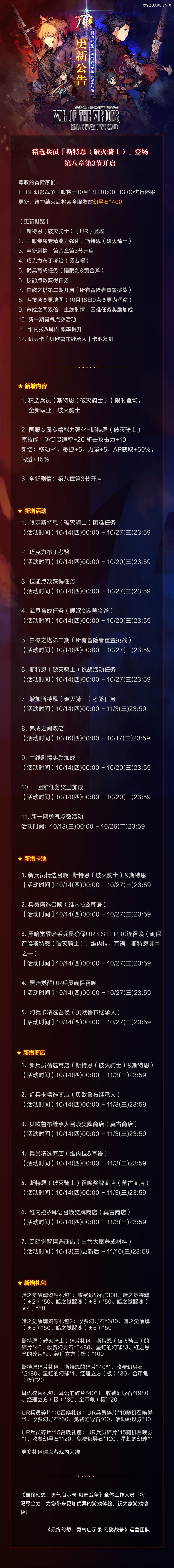 更新公告 | 斯特恩(破灭骑士)登场,新章节开启