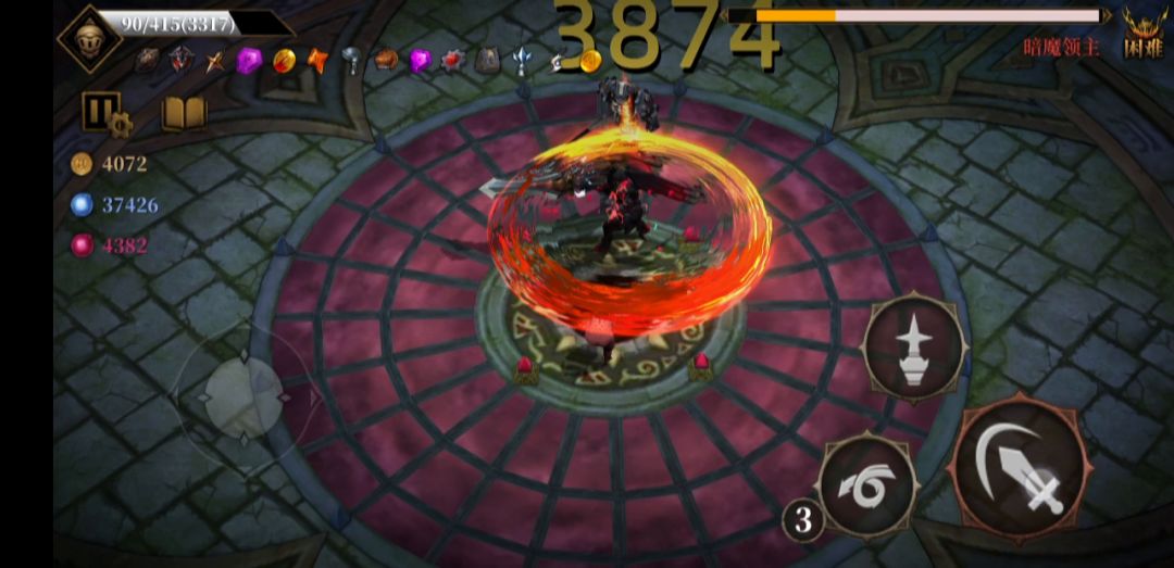 护甲选择处刑护甲,敌人生命低于50%时伤害提高40%,镶嵌宝石选择的是陨石碎片,生命低于30%时有20%几率造成2倍伤害,另一个宝石选择狂战士护符,生命低于50%时攻击力提高50%,配合上古代恶魔30%的攻击加成,既然都是大比例伤害提升,这么搭配的思路就是压血极限输出,但容错率极低,一不小心就容易挂掉。至于伤害的差距,可以对比前文的锤子跳劈流视频,同样的boss,不同的伤害!