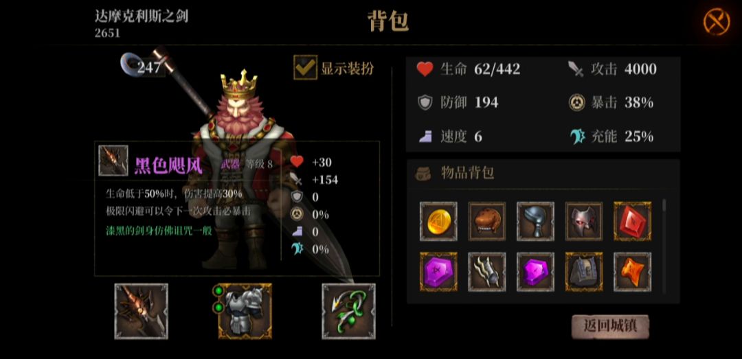 漆黑流与爆发流同样是压血增加输出,不同之处在于爆发流走的是极限输出流,不考虑防御,容错率较低,而漆黑流在增加输出的同时兼顾了防御,容错率更高。漆黑流的精髓是什么,不是秒怪,而是对撸!!!至于装备的搭配方面,我并没有选择国王+大嘴的组合,不是因为不强,而是因为太强了,这种组合可以适合任何流派,所以不在这里介绍(详细可看我写的副武器极限输出)。护甲方面选择漆黑护甲,拾取食物不回血,转为恢复75%护甲,镶嵌宝石方面择的是陨石碎片,生命低于30%时有20%几率造成2倍伤害,另一个宝石选择狂战士护符,生命低于50%时攻击力提高50%。这样刚上来让怪把你的血打到只剩30%以下,然后见到血就吃,这样挨打是先掉护甲不掉血的,而你又可以享受到狂战士护符和陨石碎片的增益效果。最后配个视频,由于图中吃到了战争硬币和大嘴魔像,攻击力有点高,本来想跟领主多对撸一会的,无奈他真不抗揍啊!