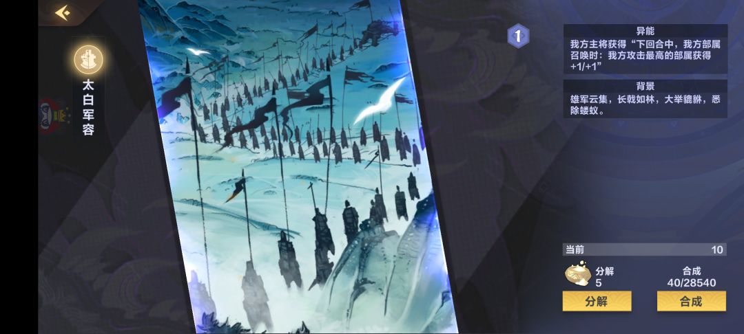 然后太白军容,这卡是干嘛的呢?请看清楚它的说明,直接在下回合让我们攻击最高的部署涨身材,也就是说配合耀歌大招,一下就能让最高攻击部署身材+4+4,配合煜音的话,直接身材爆炸😂