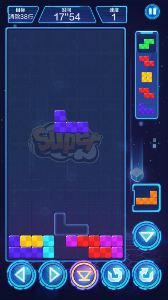 答案是可以,这就需要方块超人们利用到现代俄罗斯方块特有的SRS(Super Rotating System),即超级旋转系统的规则。看似复杂但其实操作起来很简单,大致就是:Z顺-顺,S逆-逆,J顺-逆,L逆-顺。因为SRS必须用到双向旋转,所以单向旋转却想学习PC开局的小伙伴们可需要多加练习更正习惯了。