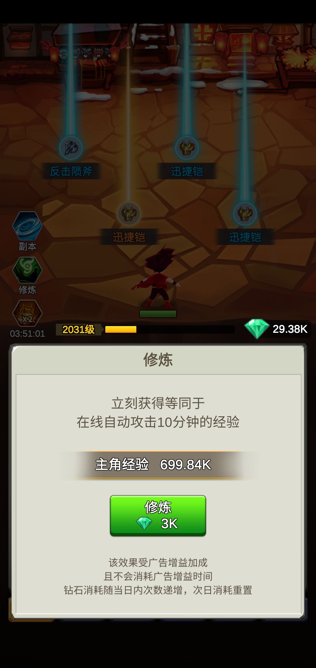 这套怪物接近秒刷装备挺快,但经验怎么算?修炼少的可怜,感觉怪物不应该打死要磨死当然主角不能死的经验收益最高,修炼应该是这样算经验的感觉,让我很迷茫到底是快点杀死还是攻速王道?