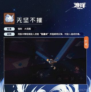 用脉冲臂枢向前发射“能量体”后召回并发动蓄力一击,对前方直线范围的敌人造成伤害。