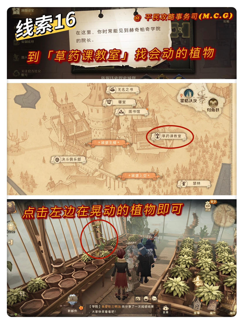 线索16:进入「草药课教室」,默认站位的左边,点击在晃动的植物。
