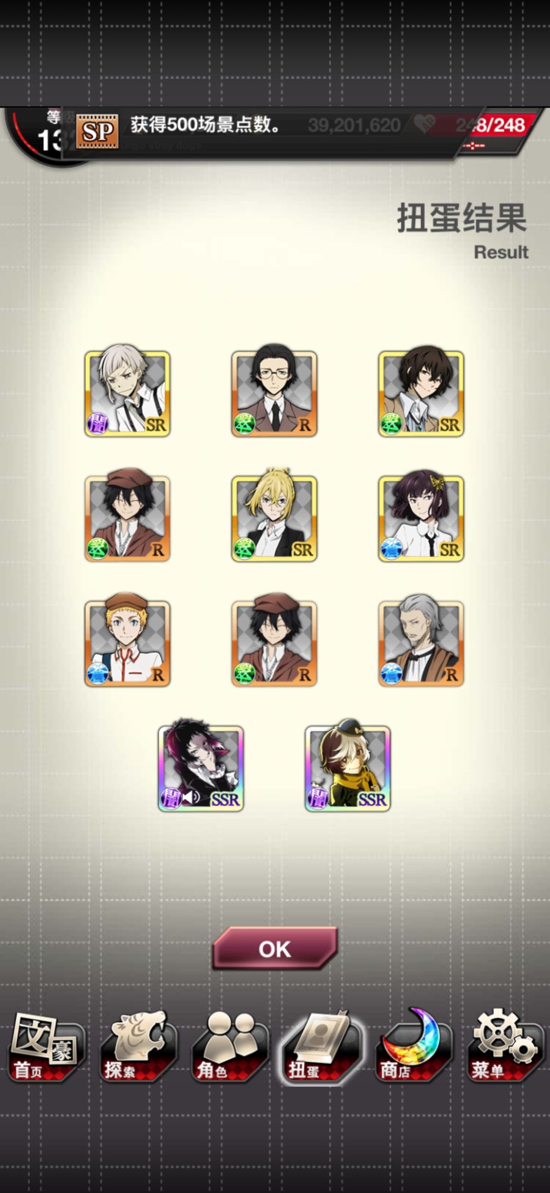 然后大号2000多石头十个十连抽了三个织田以及全部歪出,织田在s4拿到第一个