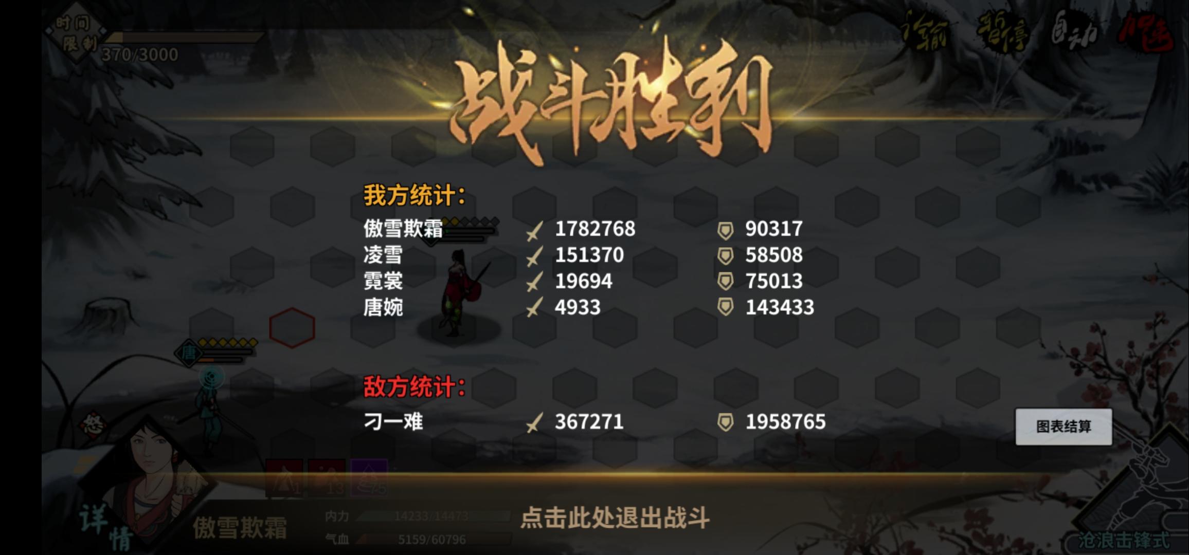 4刁爷第二次动必须用剑开雪原且连动最好用内功。我方两输出均达到奋战最大值