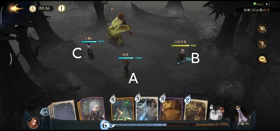 巨怪👉如图所示,ABC站位,每人用艾薇解决一只巨怪