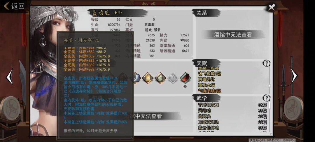 一件装备,能有多大的提升呢?以镇楼图为例,在双蓝条的加持下内劲是4×882×290%=10231.2