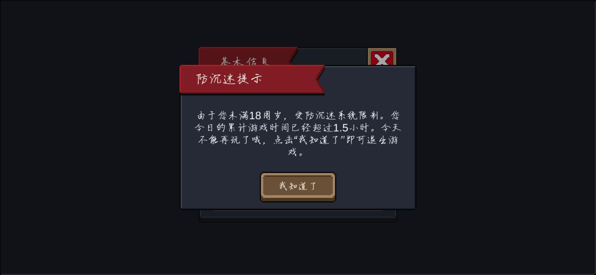 官方能否修复一下防沉迷时间?我前天把时间打完直到今天仍然是处于到时间状态。此情况在2.65版本之后一直存在,下图