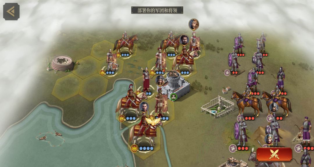实际上比较难的就是最后两个点,一个要尽量避免与大汉过早交锋,一个是怎么排海军的问题,我图里最后一个点的指挥官的排法能很大概率使他这个弓兵登陆到敌方银色城池的西面,然后开始弓兵的大量输出。