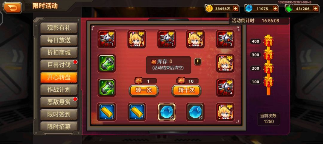 一共1250次转盘,莹珠也没到5星呀