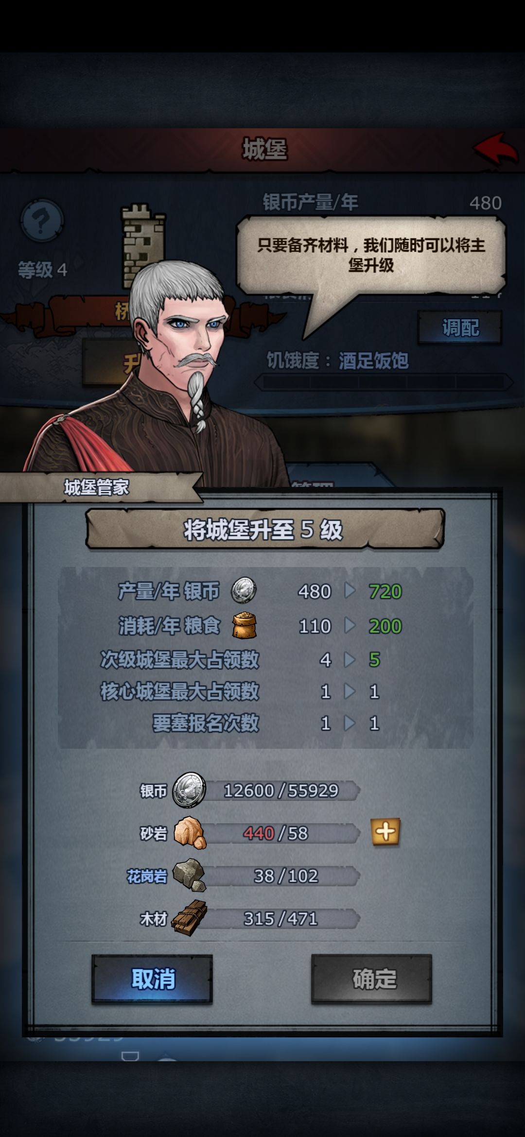 (升级5级市场,升级5级城堡主厅,4级也能嫖伯爵,最高和男爵联姻是指自家伯爵无法联姻)