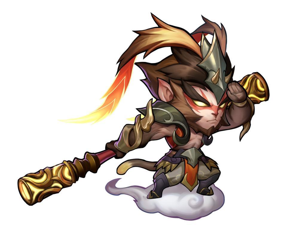 身外化身(大招):齐天大圣拔出一根毫毛,分出身外化身,分身继承本体大部分属性。当分身存在时,齐天大圣遭受的致命伤害会由该分身承受,每个分身只能承受一次。