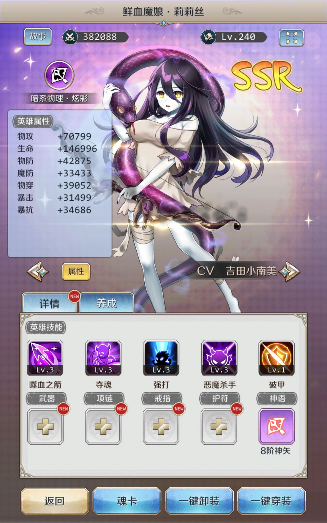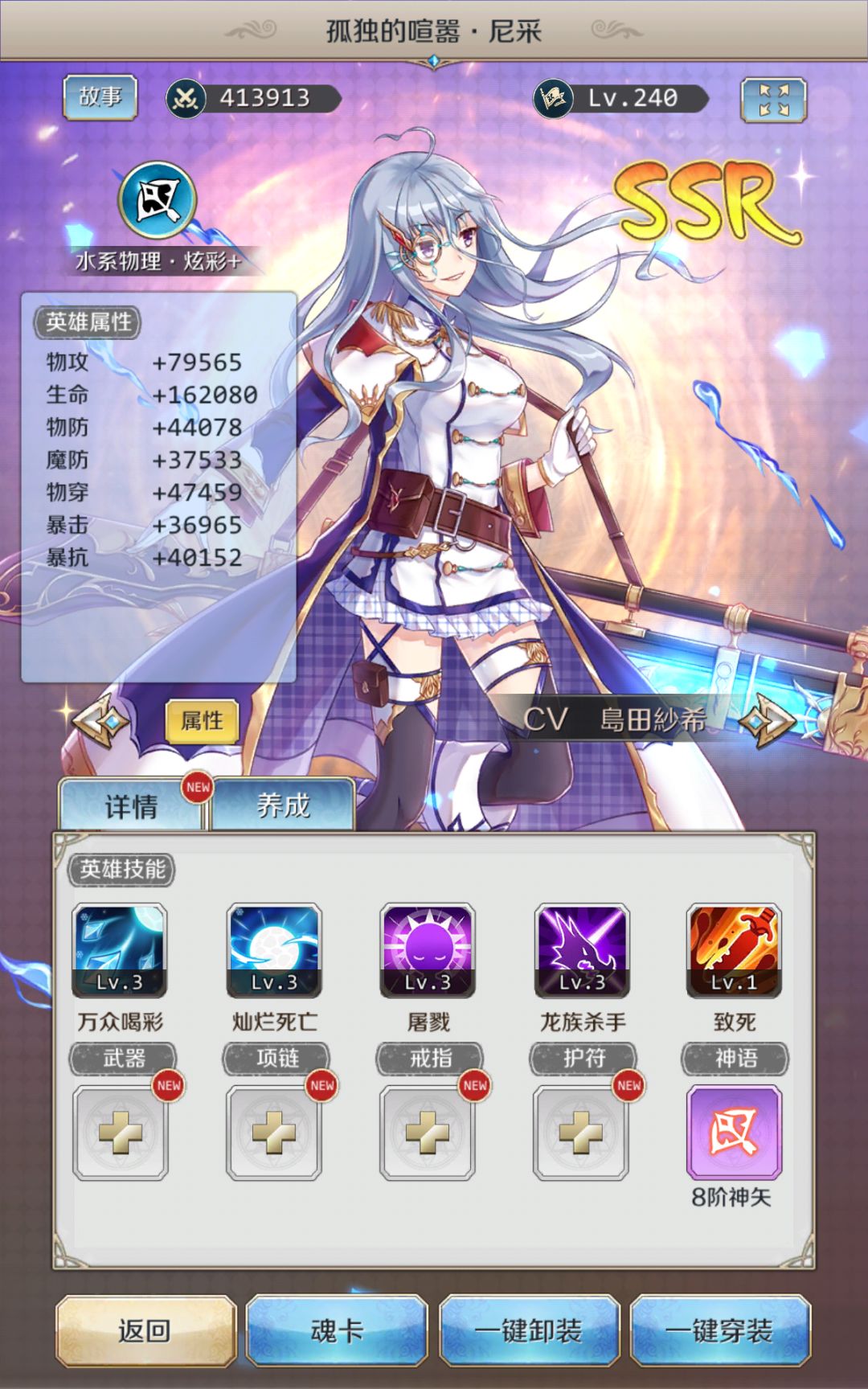 220级出战莉莉丝(炫彩恒晶)搭配助战220级尼采(炫彩+钻石)当只能选择一个升240级时,升尼采的人要比升莉莉丝的人在这一列总数值上多7000攻击7000穿透2000防御以及其他属性