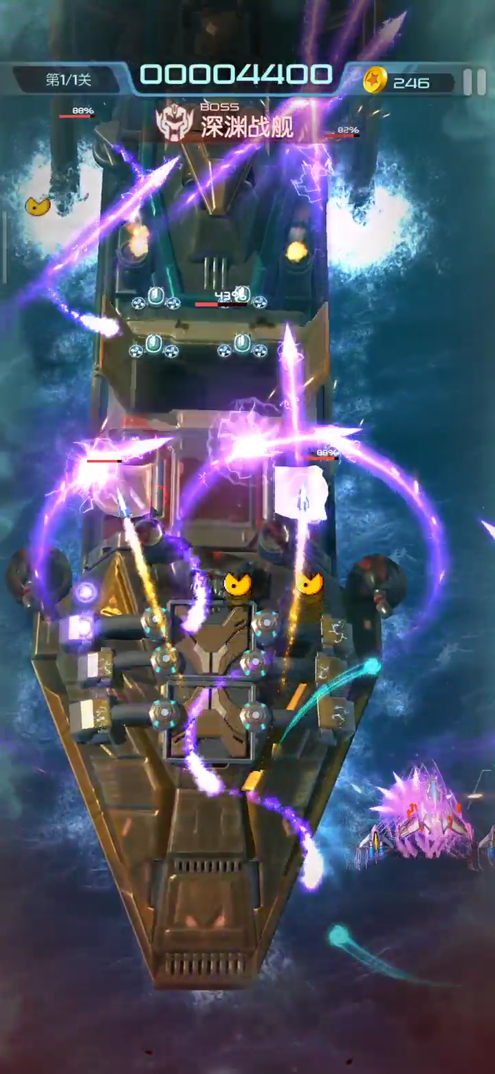 深渊战舰攻击速度快弹幕覆盖范围广,更需要飞行员适时选择走位路线,做到合理的走位规避,最终才能获得SSS通关的战绩。