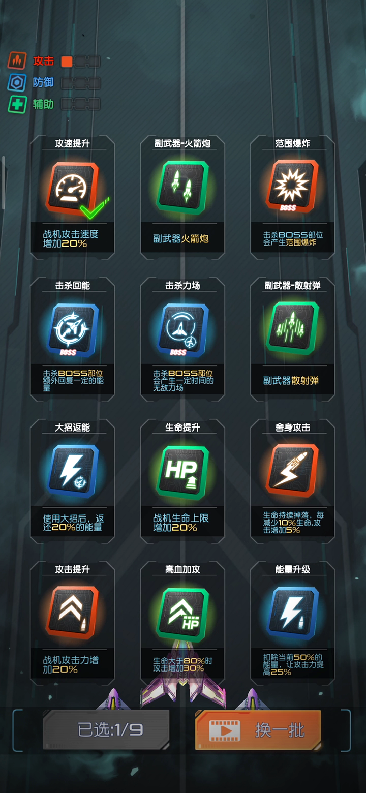 战前芯片配置是战斗前最重要的战力改变渠道。飞行员选择芯片时,尽量爆出3红芯片与3绿芯片。3红芯片可大幅提升攻击力,在攻击芯片上,优先选择提升攻速与攻击力的芯片,其次选择可提升对BOSS攻击强度的芯片。3绿芯片可让战机获得生命恢复,是战斗中最重要的生命恢复方式,在芯片选择上,可选择散弹,它可以在地图上的任意位置将攻击投送到深渊战舰攻击体上。飞行员还可选择生命提升、高血加防、嗜血等继续改善战机生命值的芯片,从而获得更优秀的换血效果。