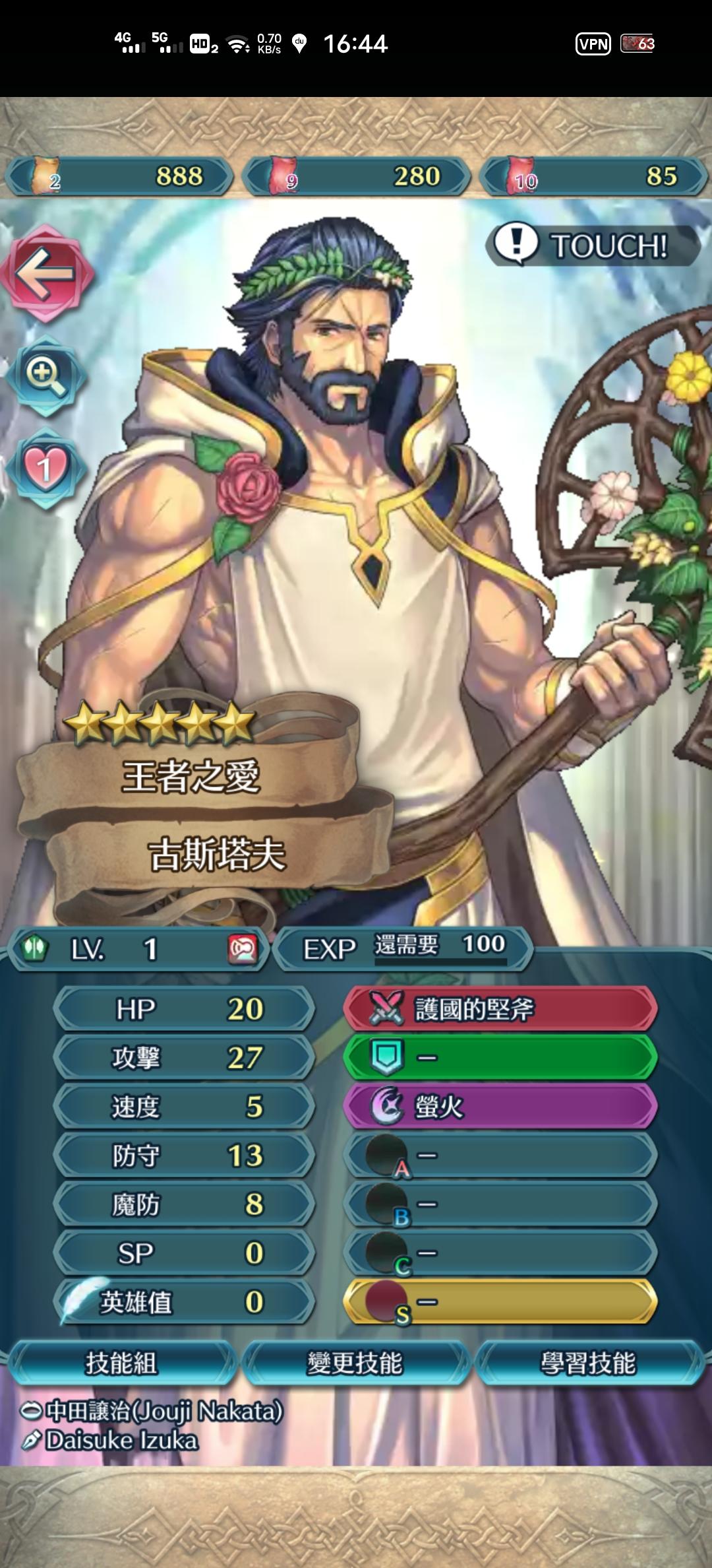 刚抽到了古塔斯夫可以当近守护人,追击时也有第一次攻击减伤……