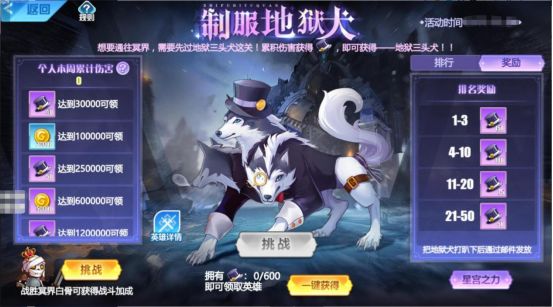 【征服地狱犬】征服冥界看守地狱犬,可获得SR英雄——地狱三头犬