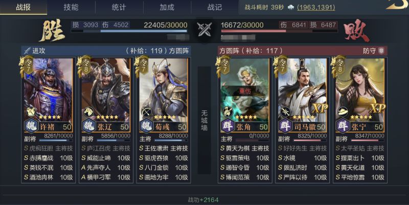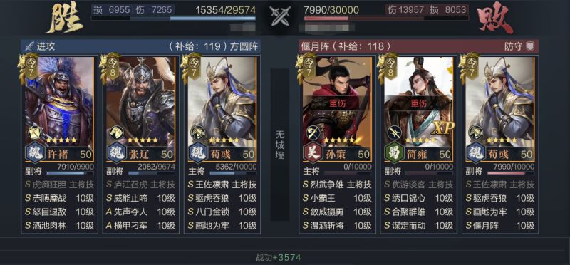 当然这套阵容的短板也非常明显,坦度和续航都非常低,伤害规避方式只有荀彧的力竭和画地、空城计的控制,没有稳定的减伤技能,所以在持续战斗中若无法有效爆头,很容易出现高战损甚至战败。另外该队伍属于纯PVP队伍,打地时战损较高,不推荐作为开荒一队培养,可在开荒完成后再出。