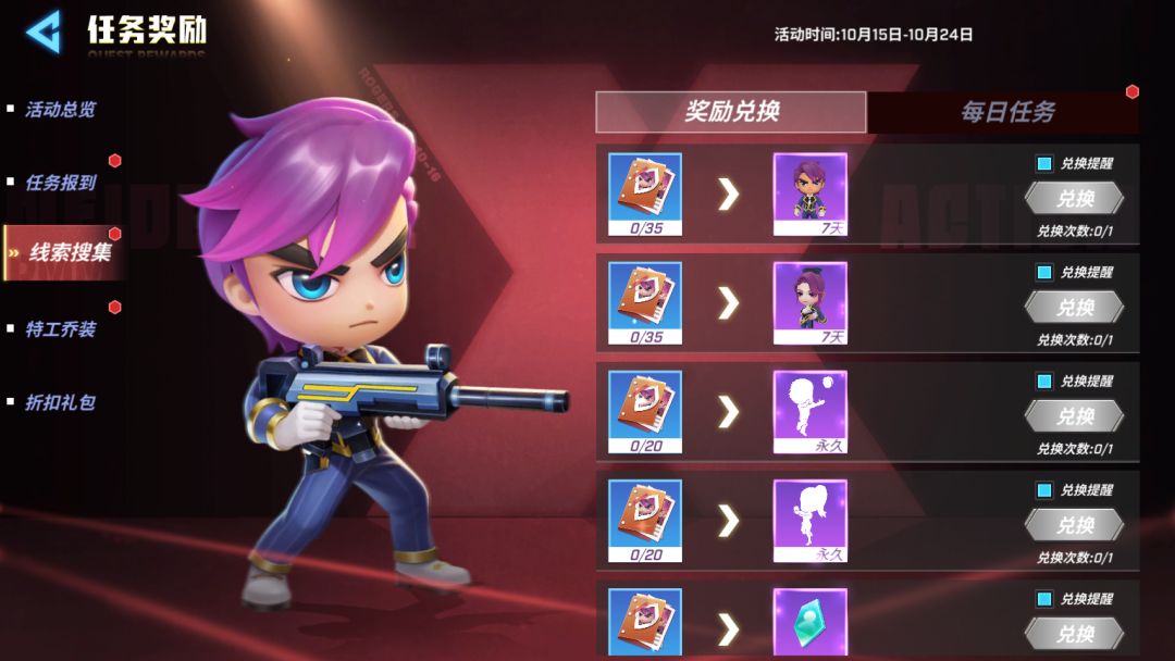 10月15日至10月24日,完成每日任务收集机密档案即可兑换好礼!