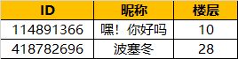恭喜以下两位主公中奖,请于10月29日前添加工作人员QQ243495436进行领奖,逾期视为自动放弃奖励不做后补。