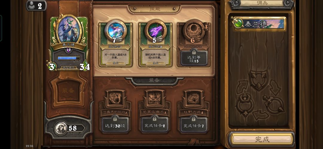 图中可以看到,目前我的【泰兰德】解锁了2个技能,分别是“7”的奥术射击和“5”的奥术齐射。